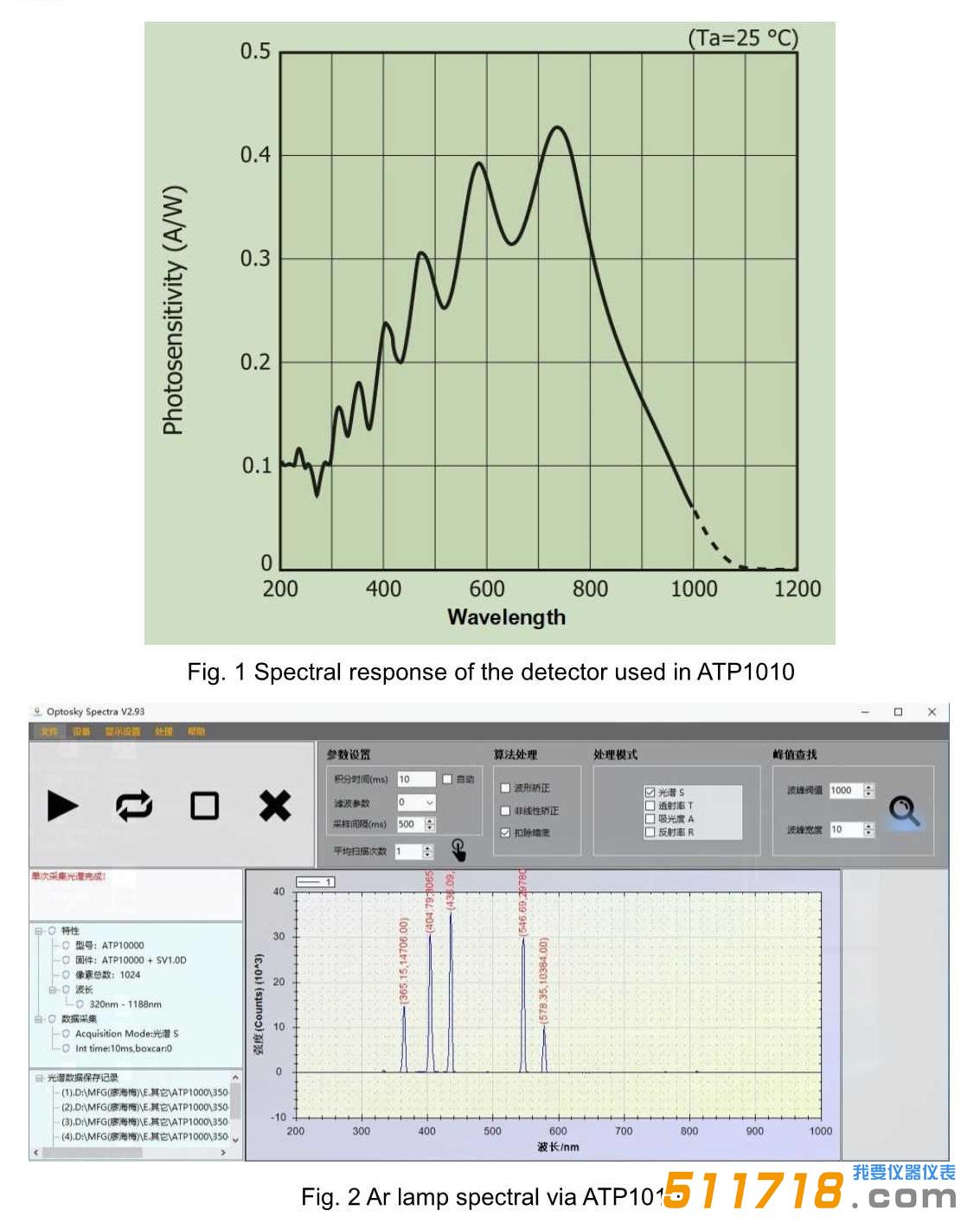 ATP1010超微型光纤光谱仪采用紫外增强的512像素线性CMOS,同时可以适应180-1100nm波长范围的测试,可适应在线测试等各种环境用途的微型光谱仪。