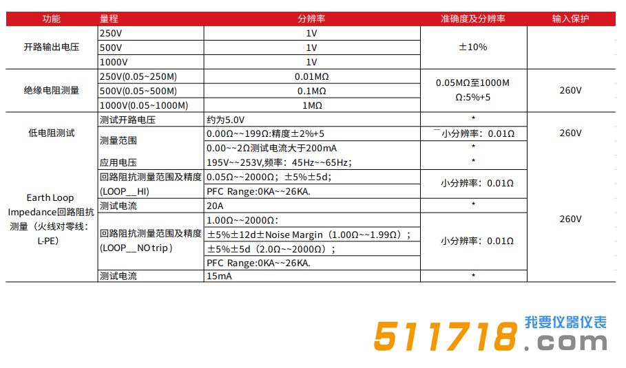 250V/500V/1000V直流电压绝缘电阻测试
