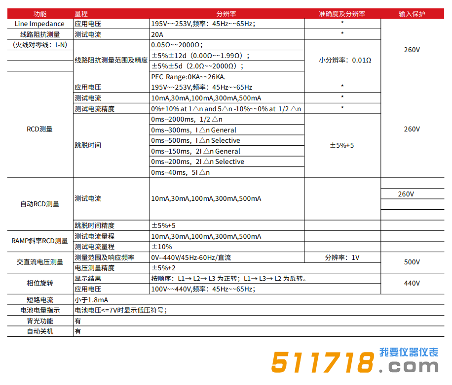 具有线路阻抗/预期短路电流测量功能