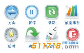 · 提供8种逻辑控制??椋悍较颉⒀邮?、事件触发、状态输出、暂停、跳转、循环、停止