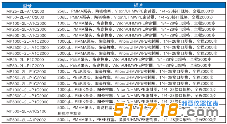 提供多种泵头材质(PMMA/PEEK/PEI及其它)、多种柱塞材质(陶瓷/PEEK及其它),多种密封圈材质(UHMWPE/Viton/FFKM/302ss及其它)。针对不同属性的溶液选择适合的材质,可延长泵的使用寿命,降低设备维护成本。