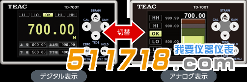 可以在可以直接读取物理量的±99999 5位数字显示和像模拟一样显示数值的条形表显示之间切换。