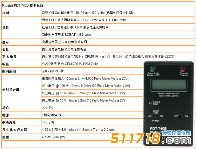 包含:PFM-711A 静电计、CPM-720A 充电板组件、PCS-730 ± 1kV 充电电源、PDT-740B 静电衰减计时器PFK-100H 仪器架